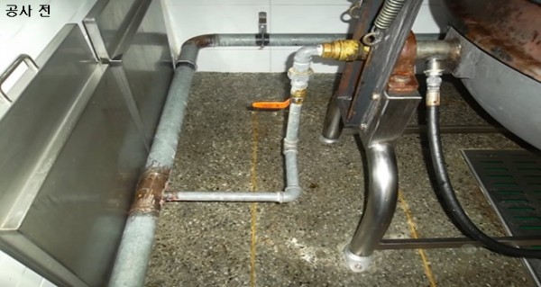 ○○○○○○대학교지점에서는 가스배관 일부 페인트가 벗겨지고 녹이슬어 6월 8일과 11일에 도색공사가 시행되었습니다.